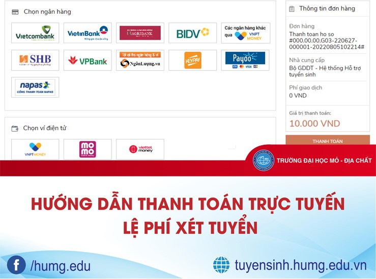 HƯỚNG DẪN THANH TOÁN TRỰC TUYẾN LỆ PHÍ XÉT TUYỂN