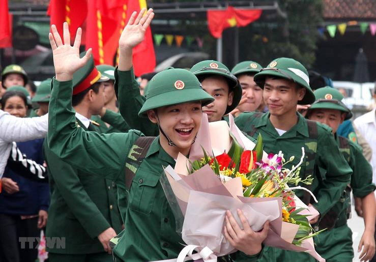 (Thanh niên tỉnh Phú Thọ háo hứng lên đường nhập ngũ, Ảnh: Trung Kiên/TTXVN)